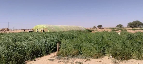 So, they have reinstated the well, built a 10m² reservoir to improve water quality and pump efficiency. They bought a water pump which needed to be replaced, irrigation pipes, fencing, built a polytunnel and a small house for the site supervisor, and are now planting trees to form a barrier to protect from the strong winds that blow through the desert. Currently there are four full-time members in the team.